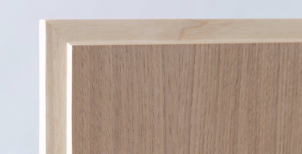 The center panel is crafted from solid oak veneer, framed with a slim profile made from either solid oak or ash. While both options offer strength and sophistication, it’s important to note that stained ash will naturally appear slightly lighter than oak due to its unique grain structure.